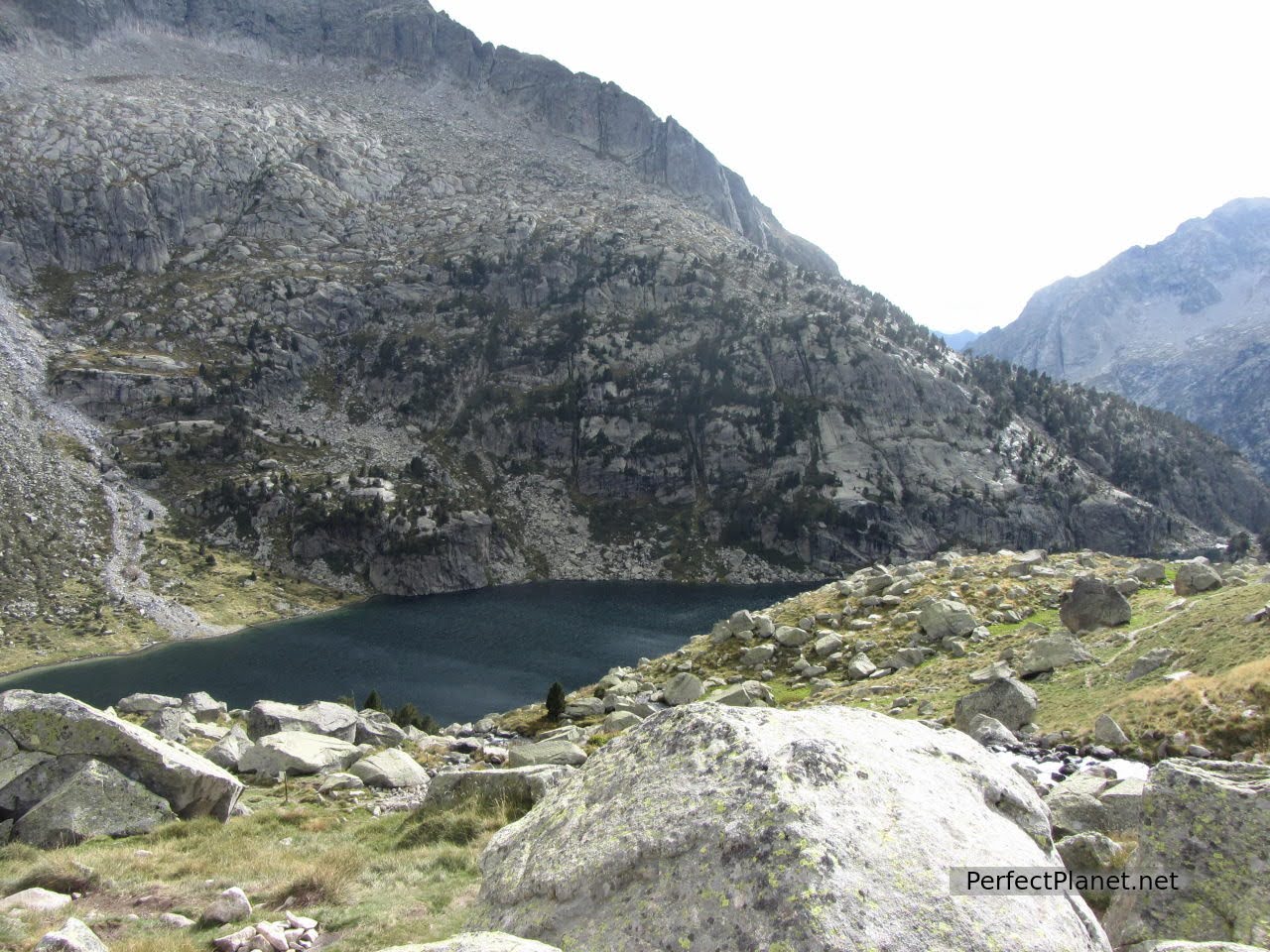 Cinco horas más tarde atravesando varios estanys (Cubieso y Tort) el paisaje cambia, es mucho más agreste y empedrado.