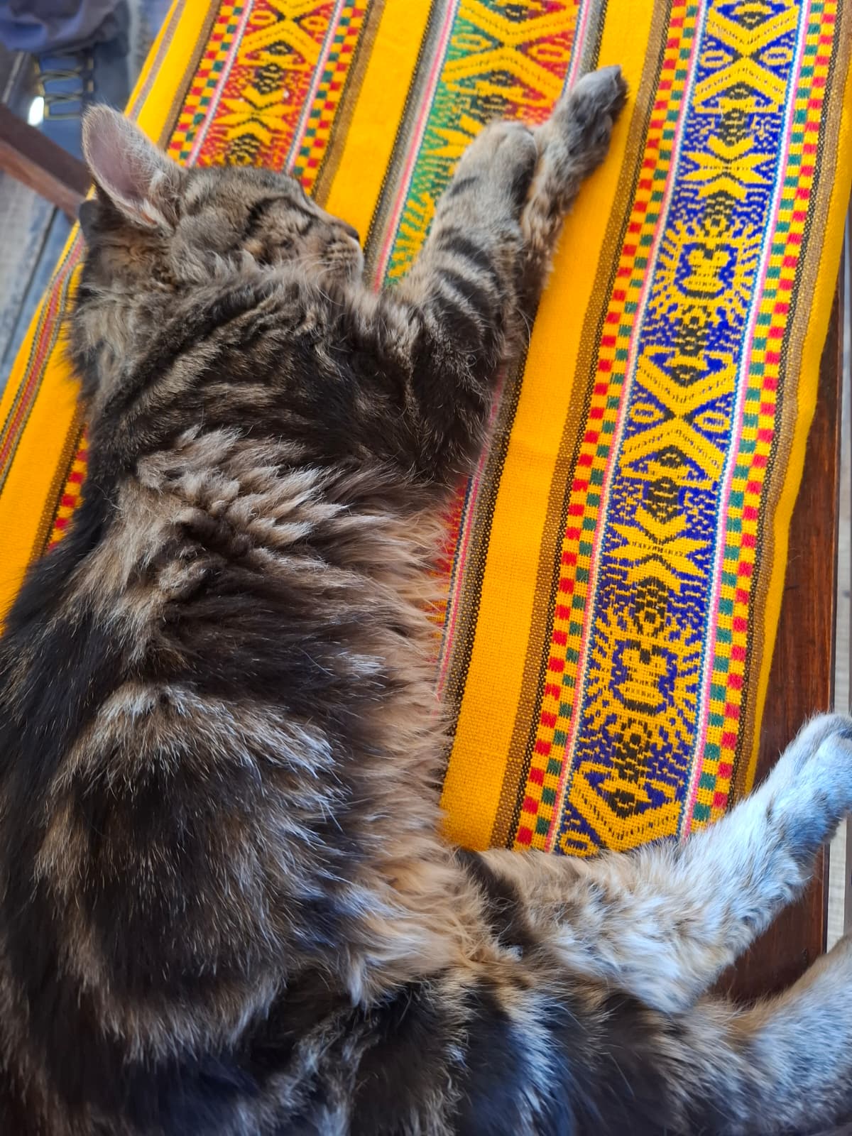 Comemos en el restaurante Las Canteras situado en la calle Lares. Es un pequeño negocio familiar donde nos hicimos un amigo peludo. Pedimos una hamburguesa y una milanesa de pollo con quinoa y verduras e infusión de muña, todo por 37 soles.