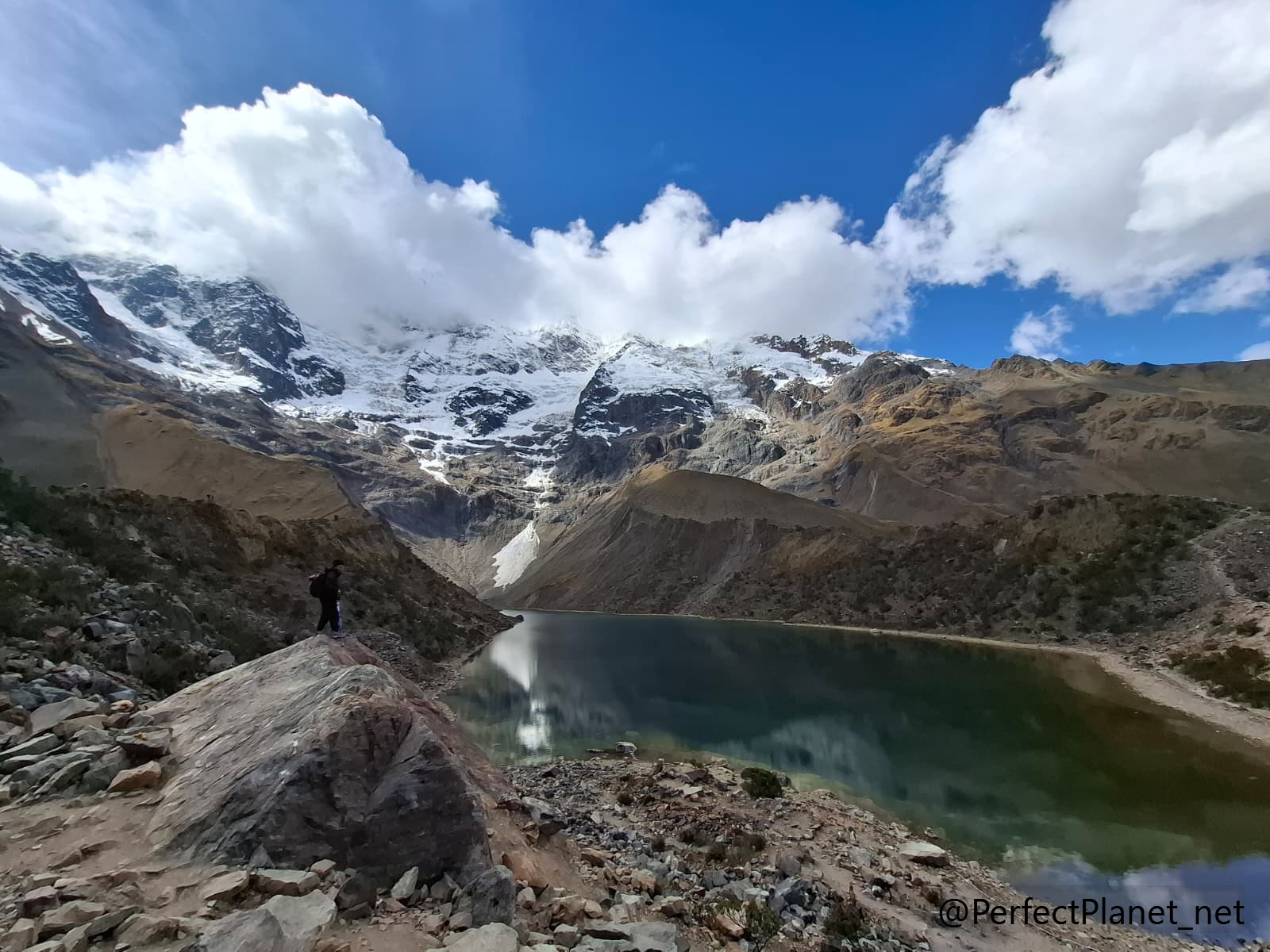 La laguna Humantay debe su nombre al nevado Humantay de más de 5.000 metros. Es uno de los sitios más bonitos de todo el trekking, el reflejo de las montañas sobre la laguna es alucinante. Se respiara paz y tranquilidad incluso cuando caen trozos de glaciar por la montaña. Distancia 3,94 kms , desnivel 350 metros.