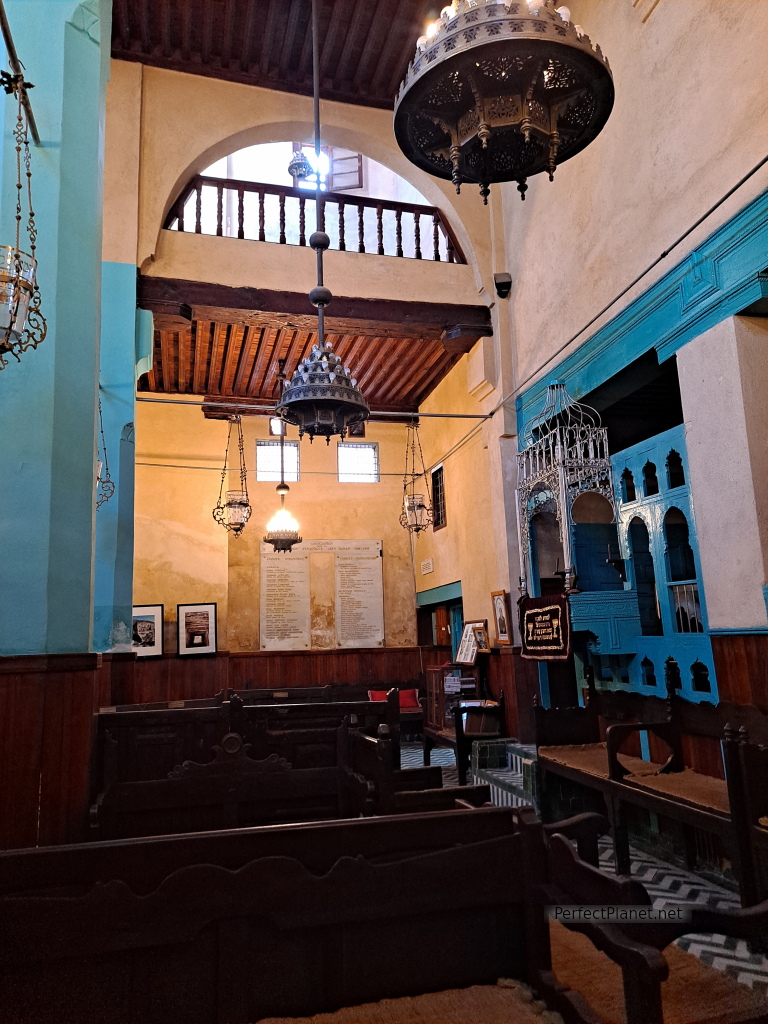 There are three synagogues in the Jewish quarter. We visited the Ibn Danan Synagogue, the oldest in Fez and one of the most important in North Africa, dating from the 17th century. Its interior preserves the tevah, the heikhal, Eliahu's chair (for the circumcision ceremony), oil lamps and embroidered tapestries. In the lower part there is a cistern where the women washed before and after their periods.