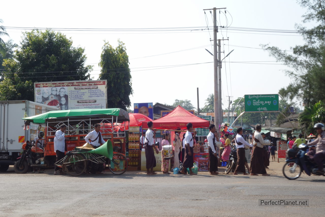 Comemos de los puestos callejeros, picamos de varios, tienen una masa con huevo de codorniz.. que rico. Hay muchos de garbanzo, otros como bollitos y sobre todo el tofu de garbanzo. Sobre todo en Yangon merece la pena probar la comida callejera.