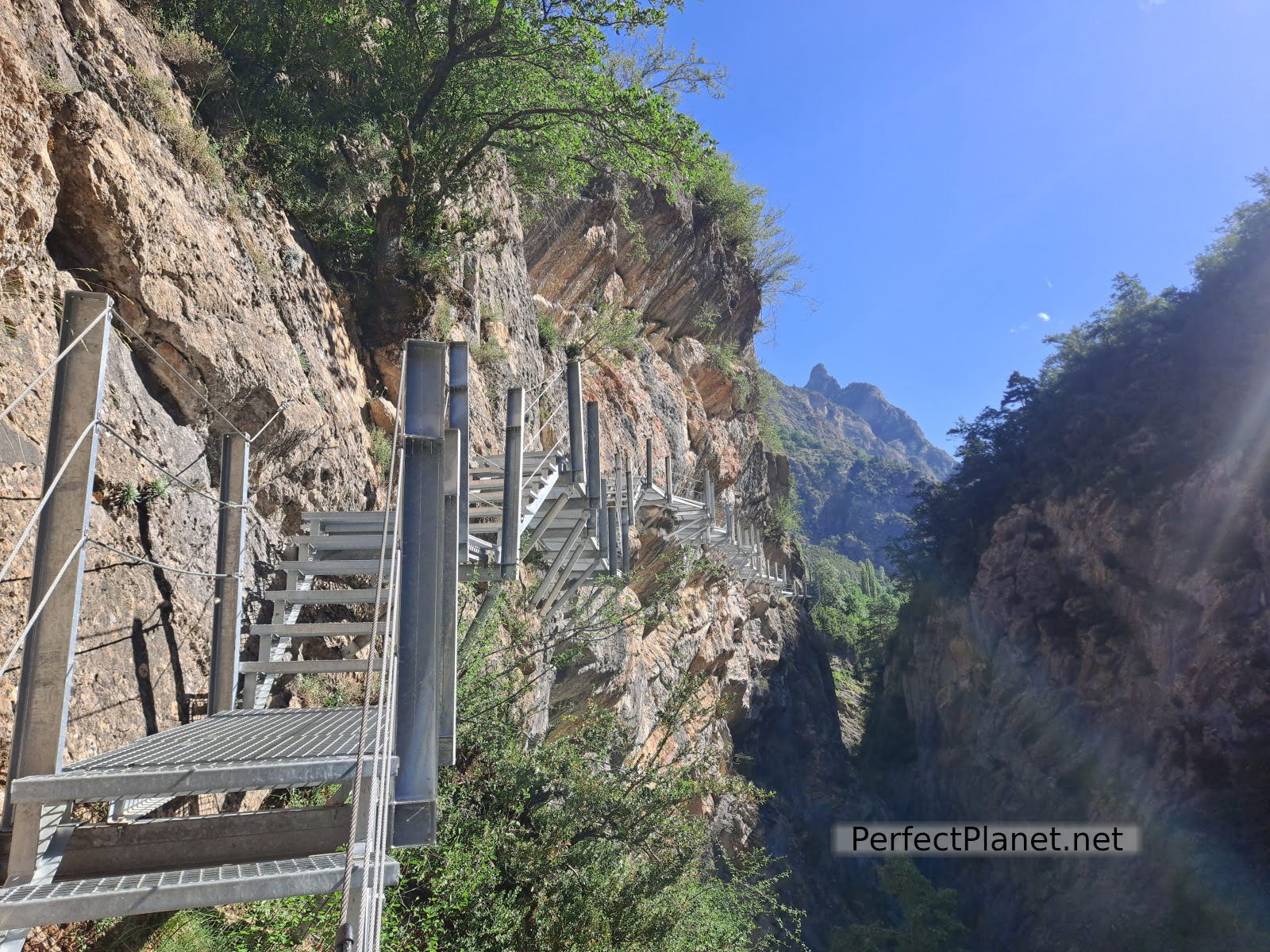Una vez finalizadas las pasarelas (sólo se pueden recorrer en un sentido) tienes dos opciones o seguir hasta el mirador O Calvé o salir hacia la carretera para regresar a Panticosa (más corto pero te pierdes el resto de la ruta).