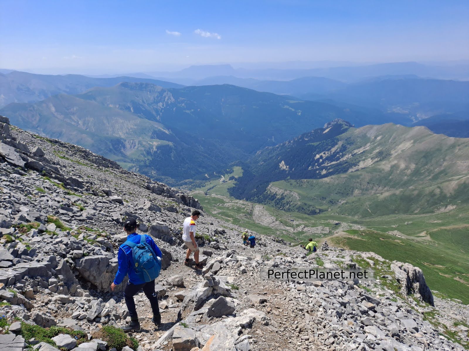 Desde el collado de Foratón giramos a nuestra derecha para comenzar la empinada subida de los casi 700 metros de desnivel que faltan, primero camino y después piedra descompuesta hasta llegar a la cima. Es un tramo exigente pero sin dificultad técnica.